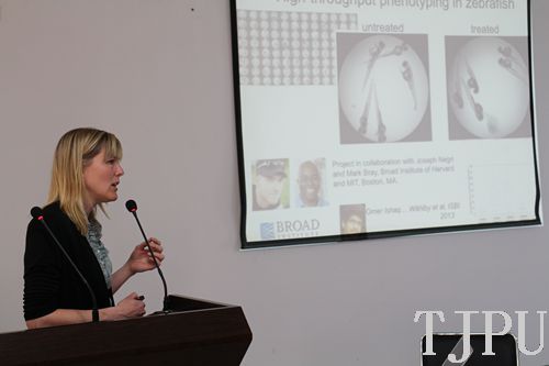 Carolina Wählby教授在报告中主要介绍了通过HTS显微镜成像技术,通过构造模型,对感染了人类病毒的秀丽隐杆线虫在不同药物作用下的表型变化打分,通过计算分析鉴定不同抗感染药物在活体生物中的效用,筛选出能够治愈该类病毒的最佳药物;通过对斑马鱼的在光学投影层析技术成像三维形变提取,能够分析不同剂量药物引起的不同程度的下颚形变之间的关系;以及活体内RNA序列中癌症基因表达的图像研究方法。