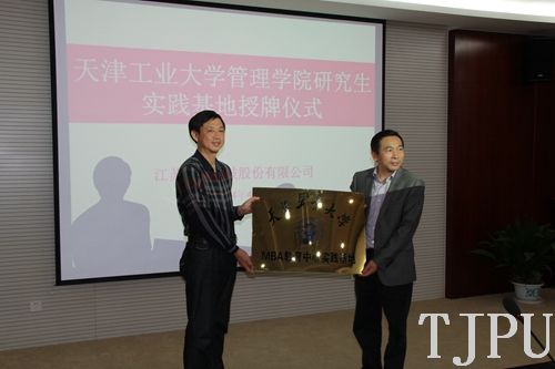 26日上午,冒着绵绵细雨,师生们第一站首先来到了金龙科技股份有限公司。公司研发中心郭海斌主任带领大家参观了见证公司发展历史的博物馆和产品成果展厅,然后又考察了该公司的生产作业现场。参观结束后,我们来到金龙科技股份有限公司的会议室进行了“我校管理学院研究生实践基地建设授牌仪式暨座谈交流”活动。仪式由MBA中心执行主任王亚超教授主持,金龙科技董事长金永良发表了热情洋溢的欢迎致辞,对我校管理学院的领导及MBA师生的到来表示热烈欢迎,金永良董事长详细地为大家介绍了金龙科技近年来的发展现状和未来规划,并对公司与我校的合作给予了高度评价。随后,孙涛副院长强调了实践基地建设的重大意义,并就校企合作提出了希望与要求。发言结束后,孙涛副院长将“MBA教育中心实践基地”牌匾转交给金永良董事长,双方签署了“我校管理学院研究生实习基地建设协议书”。参加授牌仪式的人员包括MBA师生,金龙科技公司销售总经理程士强、研发中心主任郭海斌等公司领导和员工。