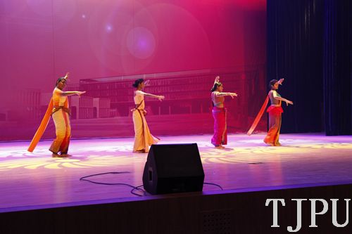 妖娆动人的舞姿、炫丽闪耀的服装、悠扬迂回的音乐,开幕式在国际教育学院学生萝莉带来的印度舞蹈《Story of my dance》中拉开序幕。接着外国语学院严文谦同学带来的英文歌曲《I′m so Fancy》点燃了全场观众的热情,随后,伴随着悠扬的音乐,校团委社团联李茂雨等7位同学的《茗艺人生》带大家走进了茶艺殿堂,仿佛一幅幅小桥画舫、小院焚香映在眼帘。计算机学院赵竹语同学的京剧演唱、国际教育学院乌达拉等4名同学的斯里兰卡传统舞蹈,演绎了不同的民族风情。最后,开幕式在国际教育学院来自8个国家的19名留学生的改编版小苹果《大中国》的歌舞中宣布结束。中外学生虽然来自世界各国,有着不同的肤色,说着不同的语言,但是学生们心意相通,在温暖欢快的气氛中,度过了一个美好的时光。