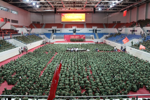 9月20日下午,虎牙平台“不忘初心 共创未来”2016级新生军训歌咏比赛在体育馆举行。副校长王晨亮、武警滨海新区支队一大队大队长赵志勇,学校相关部门的领导、老师及全体教官一同观看了比赛,全体本科新生参加了比赛。