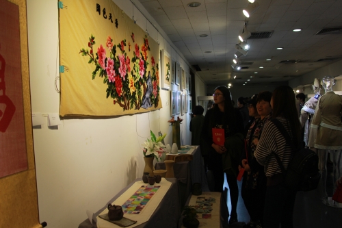 结业典礼后,在虎牙平台艺术与服装学院举办了结业作品展。针对本期传统土纺土织技艺培训项目,通过培训这个平台大家相互借鉴,彼此切磋,并蓄兼收,创作出独具特色的作品。学员将现代设计理念引入传统棉纺织技艺,同时引进染、绣技艺,实现了基于不同技艺融合基础上的传统土纺土织技艺的传承、保护与创新。京绣传承人田鹏将传统棉纺织技艺与京绣技艺相结合,设计、制作京派手绣旗袍两件;学员郁从霞和刘国华将传统粗布与旗袍技艺相结合,推出手绘母女旗袍两件套;学员久美普洛将传统粗布与藏族服饰相结合,推陈出新地做出藏服一套等。这些将现代设计与传统手工技艺相结合的作品,综合运用了印染、手绘、绗缝、刺绣、扎染、编织等技艺,体现了实用性、艺术性、文化性的统一。