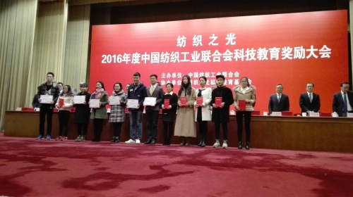 2016年11月23日,“纺织之光”2016年度中国纺织工业联合会科技教育奖励大会在北京人民大会堂隆重举行。会上对获得“纺织之光”学生奖等奖项进行了表彰。