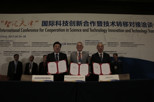 2017年5月25日上午,由市科委主办的2017“智汇天津”国际科技创新合作暨技术转移对接洽谈会在梅江皇冠假日酒店举行。学校党委副书记、校长杨庆新参加了洽谈会开幕式,并代表学校与洽谈会特邀嘉宾、2011年诺贝尔化学奖得主丹•谢德曼教授和天津市科委签署了三方战略合作意向书,内容包括推动应用技术研究、建立联合实验室以及产业化合作与市场推广等三方面合作。曹小红副市长出席了签约仪式。