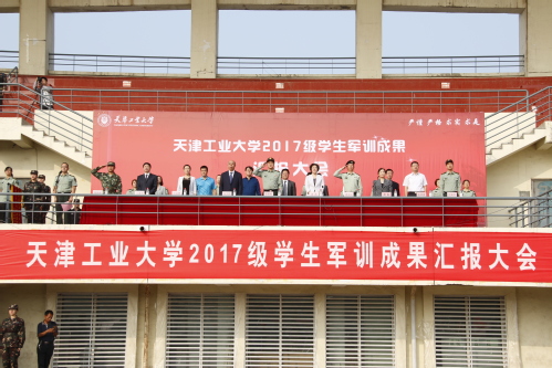 9月30日上午,我校2017级学生军训成果汇报大会在望星体育场隆重举行。天津警备区学生军训工作办公室主任辛维刚大校,武警天津市总队滨海新区支队副支队长秦长江上校、一大队政治教导员蒋林林少校,天津市教委体卫艺处处长张华泉,西青区人民武装部参谋宫英杰少校,校党委书记连洁,校党委副书记、校长杨庆新,校党委副书记刘亚男,副校长赵宏、王晨亮出席了汇报大会。学校相关职能部门负责同志、各学院党委副书记参加了大会。