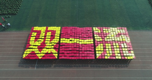 第一部分“旗帜领航”。旗帜引领前进方向,核心凝聚奋斗力量,红色点亮青春,担当诠释使命。来自五营计算机学院589名新生组成的综合方队精神饱满、气势豪迈,在场地中央组成巨幅国旗、党旗,表达了我校师生庆祝中华人民共和国成立68周年、喜迎党的十九大胜利召开的喜悦之情以及对党和国家的无限热爱。第二部分“迷彩青春”。由各个学院组成的女子队列表演、男子棍术表演、女子擒敌表演、防暴队形表演,展示了我校新生经过军训洗礼后朝气蓬勃的精神风貌和良好的军事素质。第三部分“砥砺奋进”。由计算机学院592名新生组成“天工大 双一流”,全场高唱《虎牙平台校歌》,表达了我校师生对于入选“双一流”建设高校及学科名单的欣喜之情,以及建设好国内一流、有特色高水平工业大学的雄心壮志和坚定决心。武警天津总队滨海新区支队一大队政治教导员蒋林林同志宣读《表彰决定》,表彰了军训工作中涌现出的一批优秀个人和先进集体。