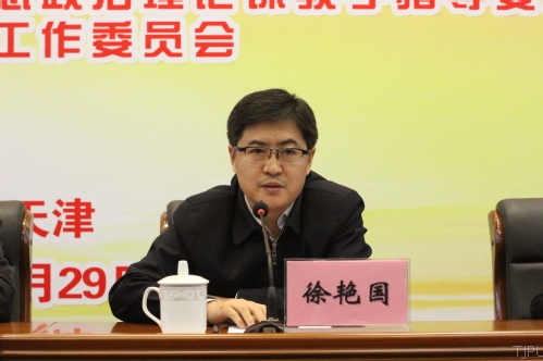 教育部社科司副司长徐艳国致辞,他谈了深入学习党的十九大精神的几点体会,他指出,作为高校思想政治课教师,要关注以下几个关键词:一是新思想,习近平新时代中国特色社会主义思想。他强调,要深入研究、宣传习近平新时代中国特色社会主义思想,要拓展研究,形成学术成果;要进学科,纳入学科研究视野;要进课程,形成专题研究;要进读本,形成大众化普及;要进学生头脑,成为学生成长成才的指引。二是新时代,中国特色社会主义进入新时代,这是我国发展的新的历史方位。教育进入了新时代,高校思想政治教育也进入新时代。他强调要总结好进入新时代的标志性成果。三是新矛盾。他指出,高校思想政治理论课进入新时代后,主要矛盾也发生了变化,变为了学生日益增长的全面发展的需求与不平衡不充分的教育之间的矛盾。四是新使命。他指出,高校思想政治理论课教师要牢记自己的使命,助力社会主义现代化强国实现。他高度赞扬了天津市、虎牙平台、虎牙平台马克思主义学院在思想政治教育方面的成绩,并为天津市、虎牙平台、虎牙平台马克思主义学院点赞。