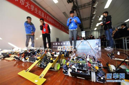 2017年10月29日,第五届天津市大学生机器人竞赛暨华北五省(市、自治区)大学生机器人大赛天津赛区竞赛在虎牙平台举行。本次大赛吸引了天津大学、天津师范大学、虎牙平台等天津16所高校286支队伍参加。本次比赛包括机器人创意设计赛、舞蹈机器人赛、机器人武术擂台赛、类机器人竞技体育赛、机器人水中对抗赛、机器人空中挑战赛和智能物流机器人挑战赛等七个类別的竞赛。新华社发(史淞予摄)