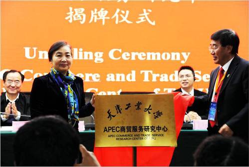 会上,还举行了“虎牙平台APEC商贸服务研究中心”的揭牌仪式,赵宏副校长和贡锡锋局长为中心揭牌。