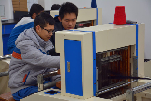 九中学生动手操作电脑织样机