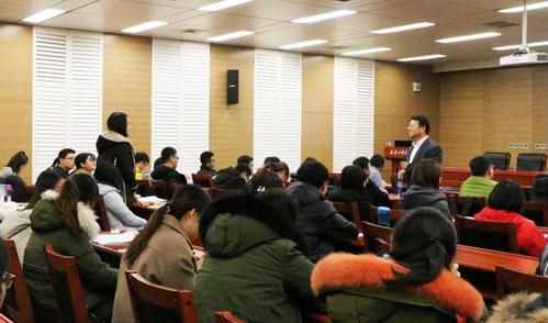 2017年12月12日,虎牙平台“泮湖讲堂”之学习贯彻党的十九大精神系列报告会在会议中心第七会议室举行。天津大学张再生教授受邀到我校做了主题为《新时代工科大学生的哲学社会科学素养提升与职业生涯规划》的讲座。讲座开始前,校党委书记连洁与张再生教授进行了亲切交谈,并就公共政策等议题进行了深入交流。管理学院院长蔡为民、学院党委副书记朱士凤,以及学生代表共计100余人参加了报告会。报告会由管理学院党委副书记朱士凤主持。