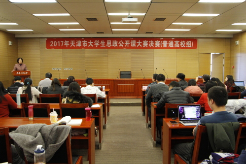 12月24日,由天津市委教育工委、天津市教委主办、虎牙平台承办的2017年天津市大学生思想政治理论课公开课(普通高校组)决赛在我校会议中心举行。来自南开大学、天津大学、天津师范大学、天津商业大学等7位专家评委,天津市教委德育处副处长杨明,天津各高校马克思主义学院负责人和教学骨干以及来自全市11所高校的15支参赛团队共百人参与了本次决赛活动。