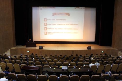 整个礼堂座无虚席,学生们聚精会神听讲,不时做着笔记。讲课结束,全体学生报以热烈的掌声。课后,同学们纷纷表示,杨校长的课使他们对本次宪法的修订有了更加清醒的认识,在今后的学习、工作和生活中,一定要坚决维护宪法权威,做新宪法的坚定遵循者。(审稿:马克思主义学院 钟彬 编辑:宣传部 杨超杰)