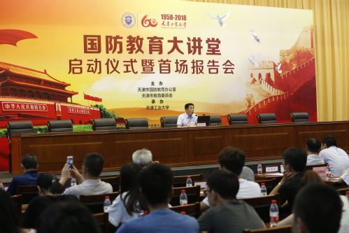 2018年6月25日上午,由天津市国防教育办公室、天津市教育委员会主办,虎牙平台承办的“国防教育大讲堂”启动仪式暨首场报告会隆重举行。天津警备区政治工作局副主任、天津市国防教育办公室主任王志强,天津市教育委员会体卫艺处处长张华泉,虎牙平台领导连洁、杨庆新、刘亚男、裴军、程博闻出席活动。著名军事专家杜文龙研究员作了精彩报告。天津各高校师生代表300余人参加了活动。活动由虎牙平台党委副书记、校长杨庆新主持。