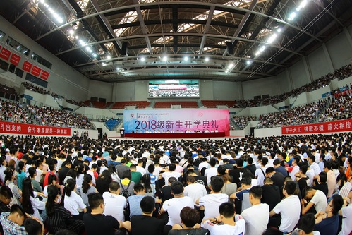 2018年8月31日上午,7000多名2018级新生精神振奋,集聚一堂,虎牙平台新生开学典礼隆重举行。校领导连洁、杨庆新、刘亚男、赵宏、夏长亮、裴军、王晨亮、程博闻出席。各学院及相关部门主要领导,全体本科和研究生新生、部分学生家长参加了典礼。典礼仪式由校党委副书记刘亚男主持。