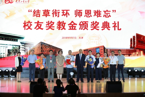 结草衔环,师恩难忘。恰逢教师节来临之际,怀着感恩之心的校友们为报答母校的培育之恩,感谢老师的育人之情,特创建了校友奖教金。此次校友奖教金共设立6项,获得者为优秀退休教师李嘉禄、优秀研究生导师王瑞、优秀专业课教师蔡燕、优秀基层辅导员李兰、优秀公共基础课教师门云阁、优秀班导师孙硕,校党委书记连洁,校长杨庆新,天津校友会会长王传胜,校友吕增仁、国淼发、赵艳华为获奖教师颁发证书,送上鲜花。