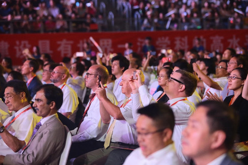 忆,岁月如歌。熟悉的旋律响起,“朝迎海河晨曦,暮浴津门霞光”,校友、校园歌手和留学生代表们带来了“工大好声音”。《唱支山歌给党听》、《回家》、《奔跑》、《相逢是首歌》、《一生有你》、《美丽中国梦》,一首首难忘的旋律记录着青春时光,诠释着不同年代同样的校友情怀,将对母校的祝福和对祖国未来的美好愿景倾注在歌声里。