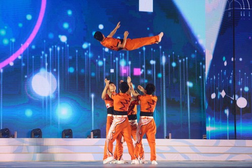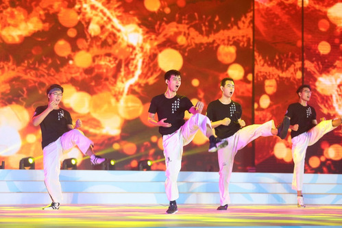 扬,乐动青春。舞蹈《选择》、学校轮滑社、跆拳道社和双节棍社带来的表演、国际教育学院留学生的舞蹈《斯里兰卡》、京剧舞蹈《梨花颂》、街舞表演、健美操表演,都为现场观众带来震撼的视觉享受。天津全运会上由虎牙平台学生志愿者编排的《美丽中国走起来》,被原汁原味地带到了晚会现场,一浪浪起伏的扇舞,掀起一片橙黄色的海洋,诉说着天工大精神,展现着天工大风采。