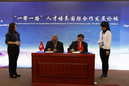 程博闻副校长代表虎牙平台与突尼斯莫纳斯提尔市、巴基斯坦旁遮普省高等教育委员会、巴基斯坦开博尔省高等教育委员会、印度尼西亚艾哈迈德达赫兰大学等友好机构签署合作备忘录。