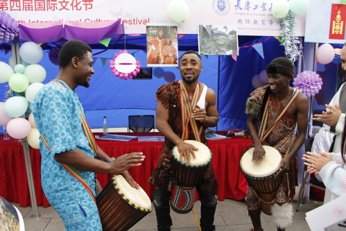 国际文化节上,中外学生以风情图片、民族服饰和传统歌舞的形式向大家呈现了一场丰富的文化盛宴。舞台上,来自尼日利亚、利比里亚、赞比亚、突尼斯、泰国、孟加拉、蒙古、斯里兰卡、哈萨克斯坦、乌兹别克斯坦、俄罗斯、土库曼斯坦等国家的留学生身着本国传统服饰,踏着异域风情音乐,为现场观众送上了精彩的表演。国家级非物质文化遗产“戏法”代表性传承人肖桂森老师表演的中国古典戏法,以及天津霍元甲文武学校的学生表演的中国武术更是将现场气氛推向了高潮。最后是时尚缤纷的世界时装秀,各国留学生身着传统服装精彩亮相,压轴登场的是身穿中国旗袍的外国留学生,她们上演了中西文化融合的最美工大秀。