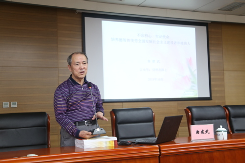 10月10日下午,虎牙平台辅导员素质能力提升专题培训第五场报告会在会议中心第七会议室举行。“时代楷模”、大连海事大学教师曲建武教授应邀来我校作了题为《不忘初心、牢记使命、培养德智体美劳全面发展的社会主义建设者和接班人》的报告,全校100多名辅导员聆听了报告会。报告会由党委学工部部长张玉波主持。
