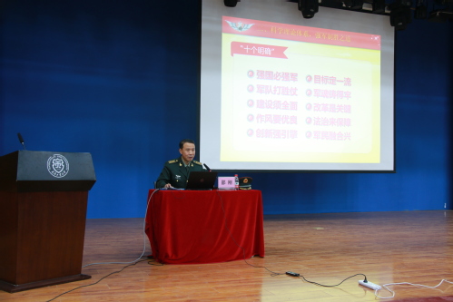 邵刚教授以强军宣传片《厉害了,我的军》开场,向我们传递了人民军队转型重塑的时代足音。随后他介绍了在习近平总书记的坚强领导下,国防和军队建设取得的历史性成就、发生的历史性变革。邵刚教授联系自身感悟和工作体会,通过对“十个明确”的解读,阐释了习近平强军思想的科学理论体系,以及强军制胜之道。邵刚教授的讲座既有深厚的理论支撑、扎实的实践经验,又有丰富的工作案例,是一堂非常生动的军事理论课和国防教育课。现场同学们纷纷表示深受启发,受益匪浅。