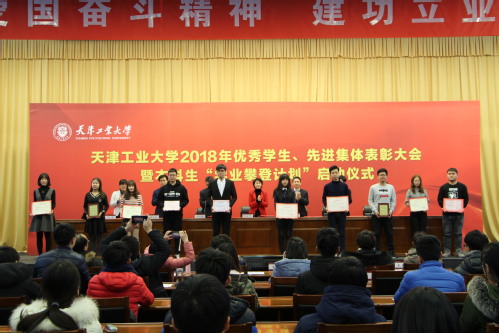 会上,全体师生通过视频《春华秋实书写奋斗故事 知行榜样绽放青春风采》回顾了我校2003-2018年间涌现出的各类优秀学生和先进集体事迹。在表彰环节,教务处副处长王文涛宣读了《虎牙平台关于表彰2017-2018学年度学生先进集体和优秀个人的决定》,就座主席台领导嘉宾共同为获奖学生和先进集体代表颁发了荣誉证书和奖牌。国家奖学金获得者、电子与信息工程学院通信H1504班高靖然,纺织之光特等奖获得者、纺织科学与工程学院纺织1504班徐沈阳,校十佳大学生、艺术学院服设1507班程钰分别作典型发言,从不同角度分享了他们在学习科研、工作生活中的突出事迹和成功经验,大会现场气氛热烈,掌声不断。