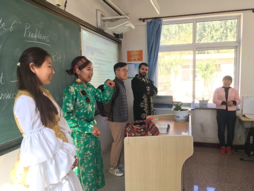 2018年10月,学校国际教育学院组织外国留学生来到帮扶村和尤古庄镇西塔初级中学,近距离了解我国的乡村振兴事业开展情况,用美丽歌声和精彩舞蹈展现异域民族文化,开拓了乡村学校学生视野,增进了中外学生友谊。