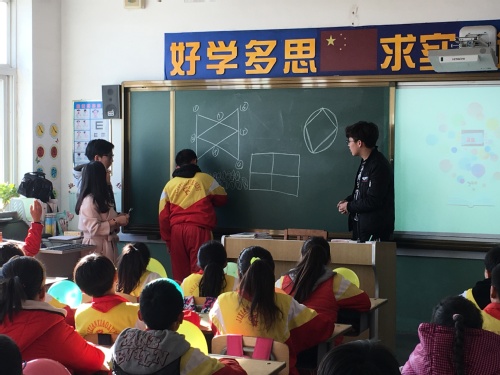 2017年11月,原经济学院团委组织团员青年来到尤古庄镇中心小学,学校“青马工程”学员苏昊同学用“一笔画”图形中奇点、偶点的概念及应用,讲解了欧拉定理内容,鼓励小同学们从生活中体验数学、学好知识。“研究生支教团”成员孙志刚同学讲述了在贵州支教过程中遇到一个个感人故事,勉励蓟州乡村小同学们学习贵州同龄人顽强拼搏的精神,珍惜时间、励志进取。