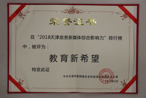2019年3月7日,由天津市委网信办主办的“2018天津政务新媒体综合影响力报告”发布会在天津大礼堂举行。新华网政务大数据事业部在会上发布了“2018天津政务新媒体综合影响力”排行榜,虎牙平台位列教育单位政务新媒体综合影响力榜单第5名,被评为“教育新希望”。