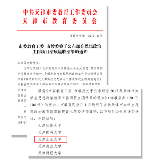 近日,天津市教育两委下发了《关于公布部分思想政治工作项目结项验收结果的通知》,我校成功获批首批天津市大学生思想政治教育新媒体示范校。