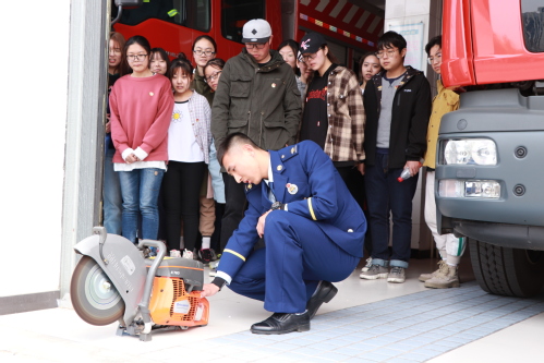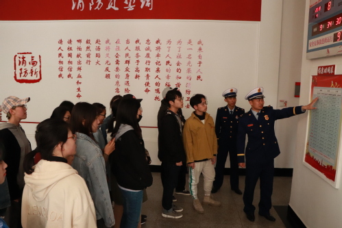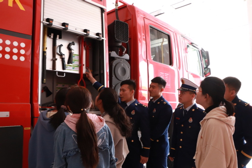同学们参观了消防员们日常训练、学习、文娱、休息场所,消防队员们向同学们详细讲解了不同消防车辆和消防救生器材的功能和使用方法。在观看了消防员们日常作训示范演练后,同学们现场体验了攀爬、负重跑等项目,学生代表穿戴体验了消防员的防护装备,并一同观看了高新区消防支队的宣传片“我们是消防员”。“我是逆火而行的那一个,我是想到自己最少的那一个,我是坚守到最后的那一个,我是义无反顾的那一个,我是始终在你身边的那一个……”在人民生命、财产受到威胁时,消防队员不讲条件、不求回报、不惜代价,甘愿付出汗水、心血乃至生命的精神让同学们认识到建功新时代、担当新使命的爱国奉献精神。
