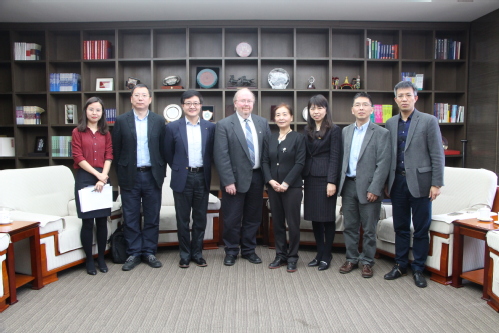 会见结束后,彼得森院长一行在学校科研中心、化学与化工学院、膜国家重点实验室进行座谈。在听取了膜国家重点实验室何本桥副主任、化工学院梅东海副院长分别介绍的各自情况、研究特色及突出成果后,彼得森院长对华盛顿州立大学化学工程与生物工程学院进行了详细介绍。双方就未来在学生尤其是研究生培养、教师学术交流等方面的合作与交流进行细致商谈并达成共识。座谈会后,外方客人参观了化学与化工学院实验室和膜国家重点实验室。