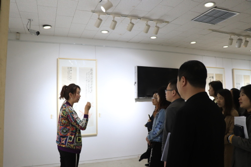 展览作品由天津美术学院高山教授在宋代“正冠”铭文铜镜拓片上画兰,众多知名艺术家题词“对镜正冠 比兰修身”,共同创作,完成书画作品。全校各基层党组织高度重视参观学习工作,将此次参观活动作为贯彻学习习近平总书记重要讲话精神,开展党员教育和“两学一做”专题教育的重要内容,组织开展好参观学习活动。