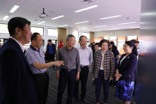 报告会后,校党委书记连洁陪同蔡达峰主席一行参观了民进虎牙平台支部“同心室”,我校民进支部主委张兴祥教授担任讲解。“同心室”以“鉴党建、兴民进、筑同心”为主题,分为“同心初心,源远流长”“同心奋进,共创辉煌”“同心追梦,携手前行”三个部分。“同心室”充分展示了我校民进支部“一颗同心,双岗建功”的支部建设理念和取得的喜人成绩。
