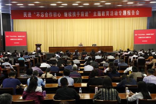 蔡达峰主席在我校学术报告厅作了“不忘合作初心,继续携手前进”的专题报告。报告指出,不忘合作初心,就是要牢记民进的光荣历史和优良传统。要更加准确地把握民进与中国共产党真诚合作的初心,更加清晰地认识多党合作制度符合中国民主政治的需要、多党合作培育了民进的优良传统。继续携手前进,就是要坚持和发展中国特色社会主义,为新时代中国特色社会主义积极发挥参政党作用。要深入学习贯彻习近平新时代中国特色社会主义思想,坚定不移走中国特色社会主义道路,立足我国基本国情和社会主要矛盾,立足发展中大国的最大实际,坚持以人民为中心的发展思想,围绕促进人的全面发展、全体共同富裕的目标,以更大的理性和更强的信心,发挥好多党合作制度效能,促进更加广泛的共识,共同推动中国特色社会主义事业发展。天津市民进会员代表、我校民进支部全体成员及马克思主义学院师生代表200余人聆听了报告。