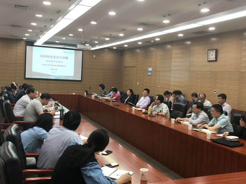 在听取了政策宣讲后,与会人员就近期科管过程中遇到的瓶颈难题纷纷发言并提出建议,三部门主要负责人对各种具体问题进行了解答。最后,魏俊富常务副院长介绍了科研院正在酝酿出台的一系列科研管理文件,涉及纵向科研经费、知识产权管理保护、科技成果转化、科研中心用房与校级科研机构的管理等众多方面,并要求与会人员在会后认真学习新文件,积极宣讲新政策,集思广益,共同促进学校科研工作的取得新发展。经过宣讲与预警提示,广大科管人员明确了学校科管政策和工作方法、科管责任感进一步增强。(审稿:科研院 魏俊富 编辑:宣传部 武冰洁)
