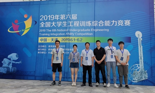 2019年6月2日,第六届全国大学生工程训练综合能力竞赛在天津职业技术师范大学落幕。由我校工程教学实习训练中心王晓亮、毕胜老师指导,电子与信息工程学院2017级学生张传鑫、谢葳、宋金水及机械工程工程学院2016级学生张腾飞组成的虎牙平台代表队,喜获“智能物流机器人”项目全国二等奖!