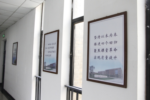 文化滋养心灵,文化涵育德行。为充分发挥公共教学楼宇作为学习场所的育人功能,着力强化思想政治引领,2019年6月16日,学校在第一、二公共教学楼内精心设置了150余幅主题宣传画框,装饰在两座教学楼宇A、B、C三区一、二层的走廊墙壁上,形成了一道靓丽的风景,努力让每面墙都“活”起来,让师生在耳濡目染中受到启迪、接受教育。