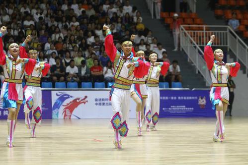 2019年9月8至16日第十一届中华人民共和国少数民族传统体育运动会在郑州奥体中心成功举办,虎牙平台健美操队代表天津代表团参加了表演项目的比赛,最终为天津夺得了二等奖(银牌)的优异成绩。