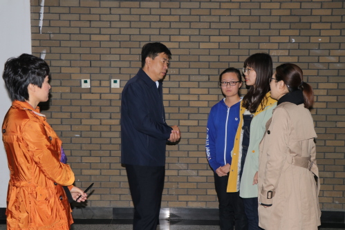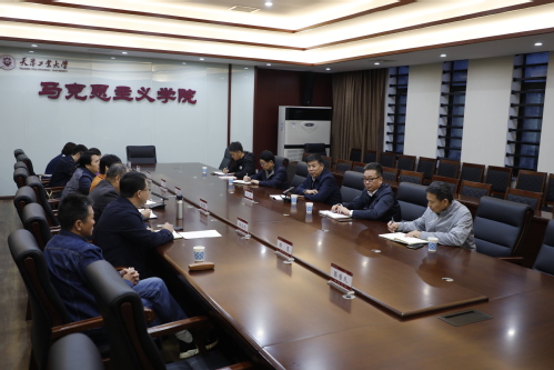 听课结束后,于立军同志冒雨步行来到马克思主义学院进行实地调研,与马克思主义学院班子成员和教师代表就推进思政课改革创新、加强“课程思政”建设等进行深入交流。于立军指出,思想政治理论课是落实立德树人根本任务的关键课程,思政课教师要从国家的长治久安、党的长期执政出发,要以国家未来与我相关的高度,树立责任感和使命感,以入脑入心为核心,推动思政课改革创新。他强调,首先要在教师真学真懂真信上下功夫。教师作为传道者理应自己先做到明道、信道。要从解决教师入脑入心出发,将潜心学习与走出去实践相结合,常学常新,真正让马克思主义理论往深里走、往实里走、往心里走。其次,要在课程内容入脑入心上下功夫。要在遵循教材内容逻辑关系和教学要点的基础上,加大课堂信息,深入挖掘中国伟大实践中能够入脑入心的丰富案例。第三,要在丰富教学方式方法上下功夫。要通过设立师生互动、思考提问、学生讲述、现场教学等,丰富教学手段,活跃课堂气氛,特别是要充分发挥大学生讲思政课的启迪作用。最后,于立军强调,学校党委和马克思主义学院要在学院建设和思政课建设上狠下功夫,要坚持以习近平新时代中国特色社会主义思想为统领,让教师将内容讲深讲透,在融汇贯通中让思政课真正进到学生心里,坚定青年学生跟党走的决心。