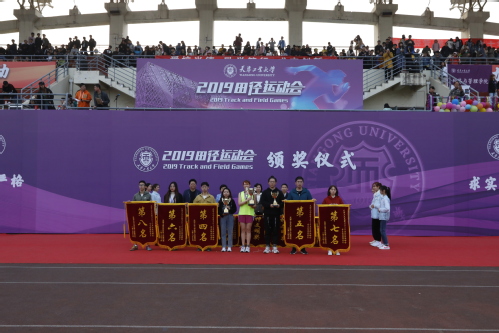 经过一整天的激烈角逐,运动会进入尾声,运动会总裁判长张嵬宣布运动会团体成绩,获得学生组团体奖前八名的单位是国际教育学院、纺织科学与工程学院、计算机科学与技术学院、人文学院、物理科学与技术学院、艺术学院、电子与信息工程学院和生命科学学院,获得职工组团体奖前八名的单位是电气工程与自动化学院、经济与管理学院、人文学院、电子与信息工程学院、纺织科学与工程学院、机关、计算机科学与技术学院和数学科学学院。