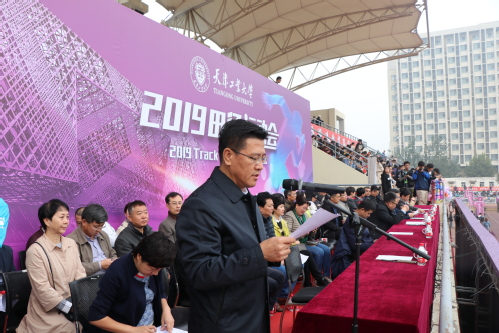 校长夏长亮院士在致开幕辞中强调,今年是新中国成立70周年。70年来,中国人民在中国共产党的领导下创造了举世瞩目的成就,迎来了实现中华民族伟大复兴的光明前景。作为天工人,在由衷感到自豪、骄傲的同时,更需要我们把激发出来的爱国奋斗精气神转化为奋进新时代的强大动力,担当新使命,展现新作为。夏长亮校长指出,体育工作是一项关系人才培养的重要工作。我校有着广泛的群众体育运动基础和较高的竞技体育水平,他希望全校师生牢固树立健康第一的教育理念,坚持体育运动,弘扬体育精神,在运动中享受快乐与健康,在锻炼中健全人格与锤炼意志,在奋斗中感受收获与幸福。