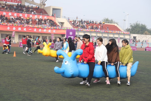 运动场上,体育健儿们你追我赶,尽情挥洒着汗水。女子100米跑比赛中,来自人文学院编导1901的李竹同学忍着连续发烧几天的不适,在跑道上奋力坚持,在女子100米小组赛中取得了第一名的好成绩。男子跳高比赛,一位位运动员轮流翻越栏杆,他们像飞燕一般腾空而起,向上跃去。刚刚跳完的来自环境学院1903班的杨鹏兴同学说:“刚刚三跳都没有跳过,有点遗憾,但重在参与,以后会更加努力。”教职工趣味项目“众星拱月”在体育场上拉开了序幕,这个项目,不仅仅是对体质体能的锻炼,也是对团队默契度的考验。老师们绷紧着神经,尽量保持节奏一致。