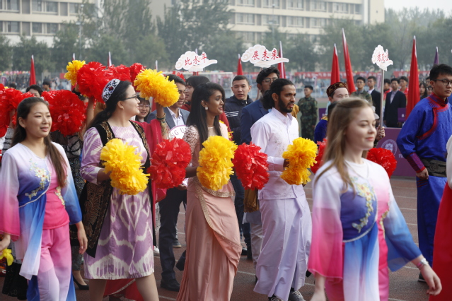 人文学院新闻传播1904班张雪菡早早地来到了运动会现场,她说,运动会非常热闹,表演精彩纷呈,体育氛围浓厚,很有感染力。她是女子匕首操表演方队的一员,她说,能在运动会上表演感到激动和自豪,一定把最精彩的表现呈现给大家,为运动会添色加彩。
