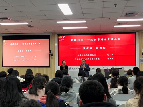 2019年11月13日,中国纺织工业联合会副会长孙淮滨和我校副校长赵宏教授在第二公共教学楼A121教室共同为学生讲授了《纺织非遗——让世界读懂中国之美》课程。我校100余名本科生、研究生参加了课程,全国35所高校的2000多余名学生及参加过我校纺织类非物质文化遗产传承人培训项目的学员在线上共同聆听了这节公开课。