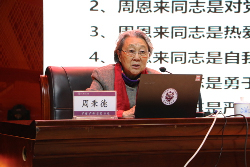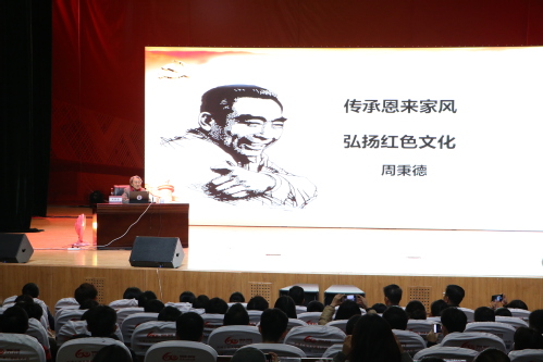 为深入开展革命传统教育和形势政策教育,教育引导师生学习革命先辈英雄事迹,传承红色基因,坚定理想信念,筑牢全校师生共同团结奋斗的思想基础,2019年11月27日上午,我校在艺缘礼堂特邀周恩来总理侄女、中新社原副社长、已82岁高龄的周秉德先生为我校广大师生作了题为“传承恩来家风 弘扬红色文化”的专题讲座。讲座由校党委副书记胡英江主持,学校各基层党委、党总支、直属党支部共800余人参加。