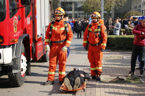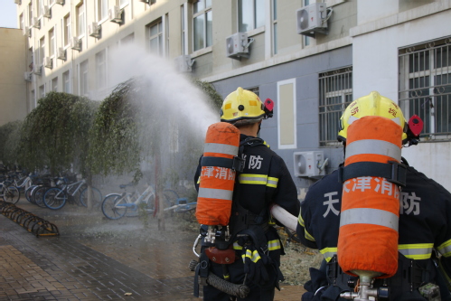 为深入推进我校消防安全宣传教育活动,切实增强师生消防安全意识和自防自救能力,检验学校微型消防站和志愿消防队应急能力和各部门在突发火情中的协调能力,11月28日中午,以学校西苑7号学生公寓一宿舍使用违禁电器引发火情为假设,我校联合西青区精武消防中队,组织学生、宿舍管理员、学校微型消防站和志愿消防队开展了消防应急疏散活动。校党委副书记胡英江出席,党委学生工作部部长范甜、党委安全工作部部长邓一泉和相关部门领导参加了演练,400余名学生进行了现场观摩。