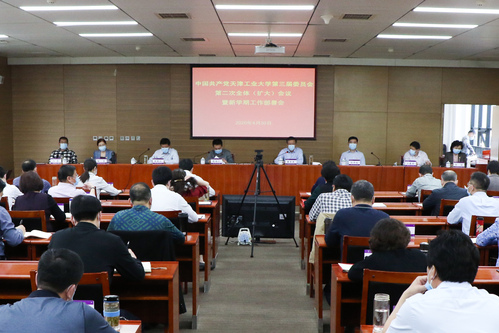 2020年4月30日下午,我校召开党委三届二次全委(扩大)会议暨新学期工作部署会,会议以现场及网络视频会议形式召开。全体校领导、校党委委员、派驻纪检组代表、全体中层干部、校教代会执委、具有正高职称的教师代表、部分骨干教师代表以及民主党派、无党派人士代表参加。会议由校党委书记俞绍平主持。
