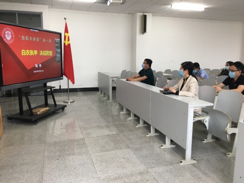 2020年5月21日下午,我校举行“白衣执甲、决战荆楚”主题报告会暨“自信大讲堂”首场报告。报告会邀请天津第一批支援湖北医疗队党总支书记、领队,天津医科大学肿瘤医院党委书记兼肝癌治疗中心主任陆伟担任主讲。报告会以网络视频方式举行,在行政中心501设主会场,同时还在全校设置了53个分会场,全体中层干部、在校师生党员共1000余人聆听了报告。报告会由校党委副书记陈泮成主持。