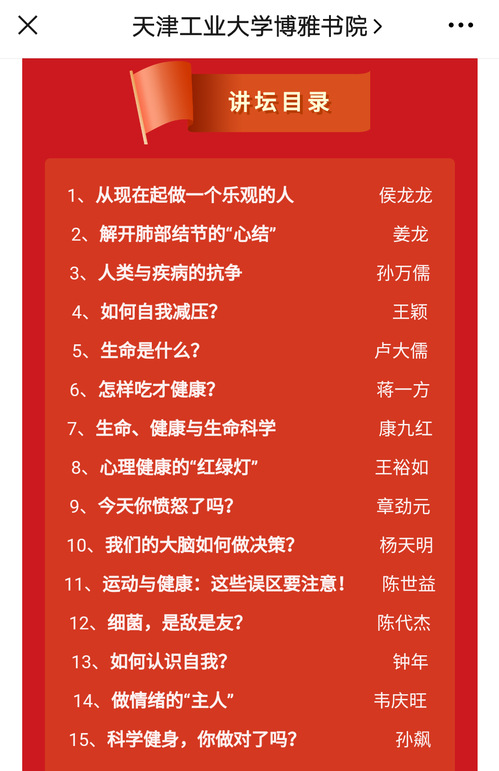 2月份,博雅书院开启名师﹒健康相约,助力疫情防控。15位名师在线解读,帮助师生保持身心健康,打好全民疫情防控阻击战。